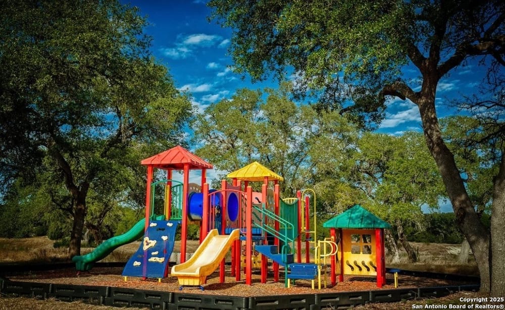 Million Dollar Hill Country Views! This 1.27 acre property (lot 68 plat attached) is scattered with many mature oak trees, offers 2 different flat build sites with unobstructed Hill Country Views off the back of the property! Best to walk the left side of the property to see the flat clearing and the views off the back of the property. Community Features Include: Gated Entry, Jr. Olympic Swimming Pool, 18 Hole Golf Course access within Community, Playground/B-Ball Court, and a Private Guadalupe River Park! Come by and see the views for yourself!