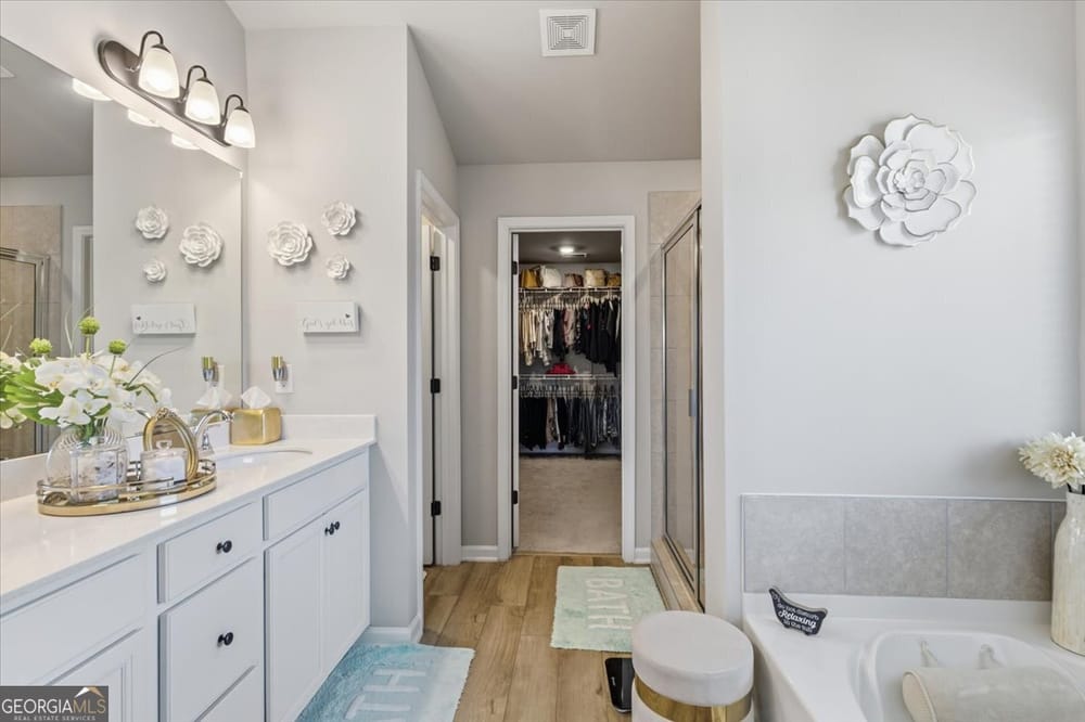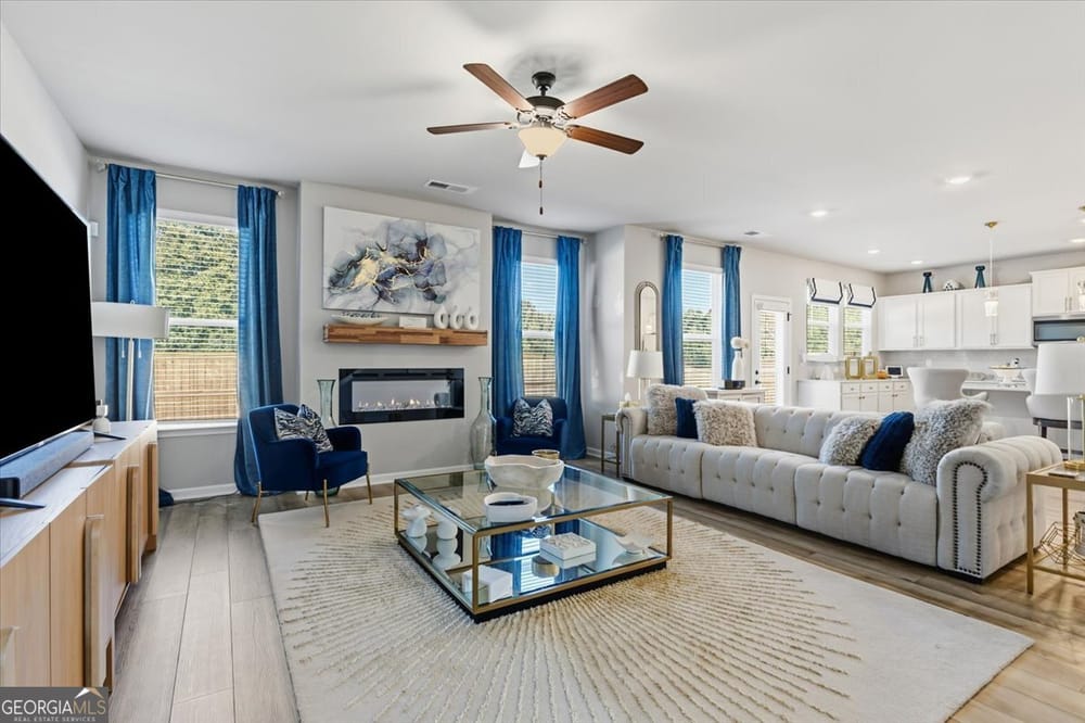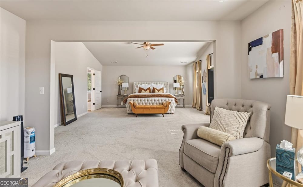Luxury meets lifestyle in this like-new 5 Bedroom retreat! Tucked away in a quiet cul-de-sac on nearly 2 acres, this home delivers modern elegance, natural light, and an open floor plan that lives as beautifully as it entertains. The main level highlights include a coffered-ceiling dining room, executive trim package, and a versatile 5th bedroom for guests or a home office. The chef's kitchen features quartz countertops, Samsung Bespoke appliances, and an oversized island overlooking the family room. Upstairs, a spacious loft adds flexibility, and the expansive primary suite offers a sitting area plus a spa-inspired ensuite with stone-core flooring, soaking tub, and walk-in shower. Every inch of this home exudes quality, space, and sophistication. Don't just dream it-live it. Schedule your private tour today and experience the comfort, elegance, and space this home offers.
