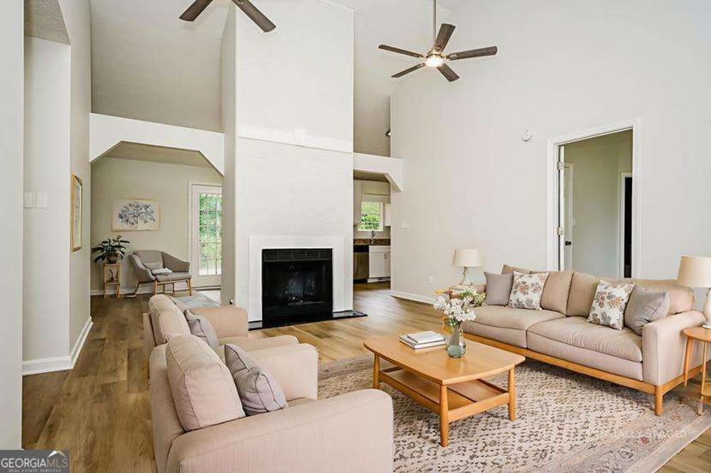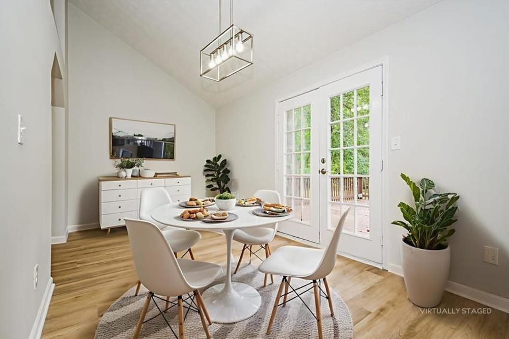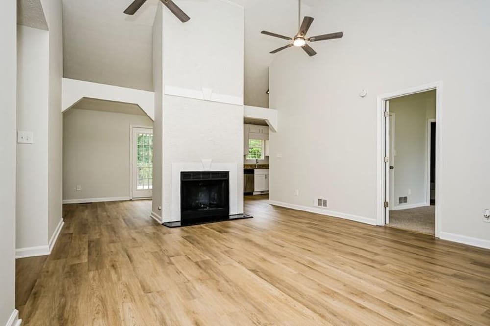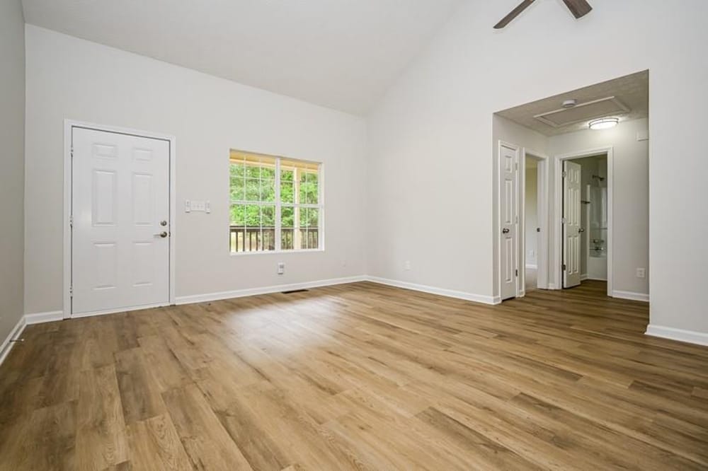 Experience comfort and style in this spacious 3-bedroom, 3-bathroom pet-friendly home offering 1,678 sq ft of well-designed living space. The modern kitchen features stainless steel appliances-including a refrigerator, microwave, range oven, and dishwasher-and flows seamlessly into an open-concept living area with soaring vaulted ceilings. Step outside to a private fenced yard with a deck perfect for relaxing or entertaining.