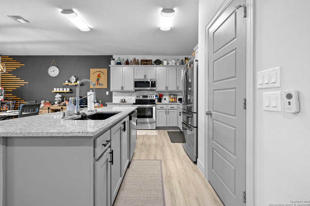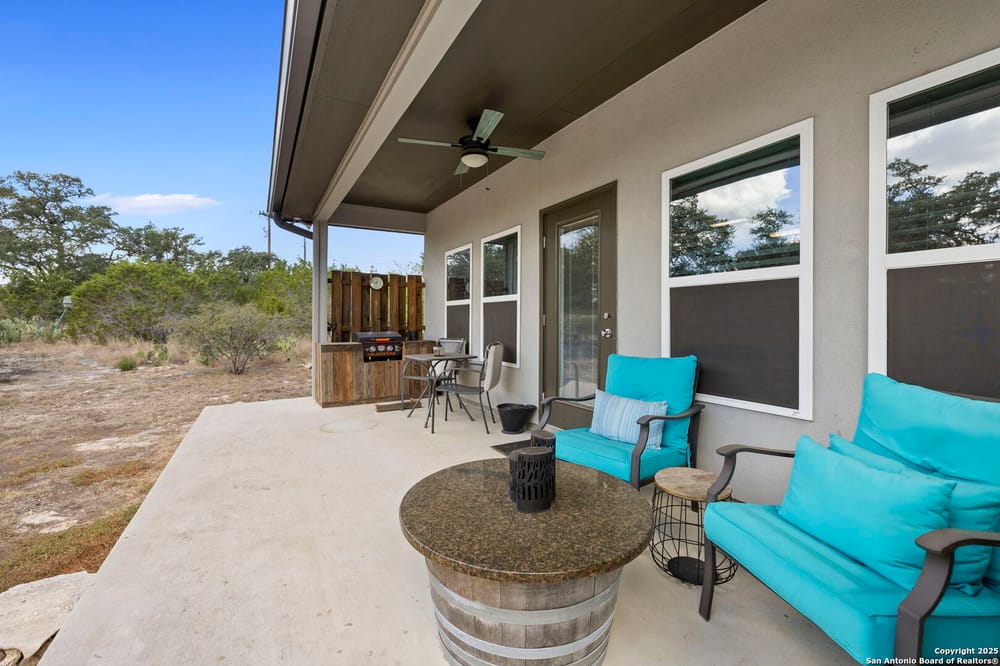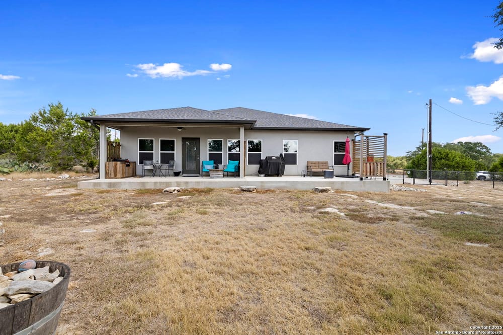 Discover peaceful living in the Texas Hill Country with this 1,998 sq. ft. custom home, nestled on over an acre in a gated community with private river access. Just 6 years old, this thoughtfully designed residence features a desirable split floor plan and timeless finishes throughout. The inviting kitchen offers granite countertops and ample storage, opening to spacious living areas perfect for gathering. The oversized primary suite is a true retreat, complete with a spa-like bath boasting a large soaking tub, walk-in shower, dual vanities, and generous walk-in closet. Outdoors, enjoy a fully fenced yard, mature trees, and a covered back porch where you can relax while watching the deer roam. With neighborhood amenities and a serene setting, this property blends privacy, nature, and comfort-yet keeps you within easy reach of all that Spring Branch and the Hill Country have to offer.