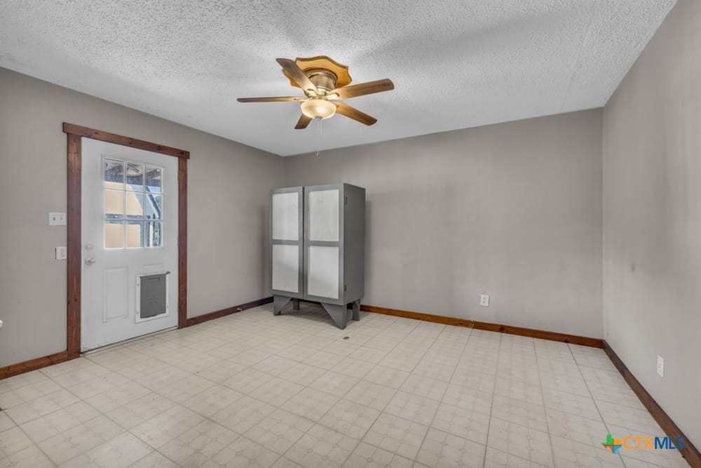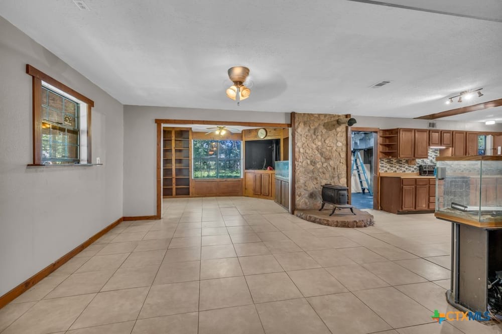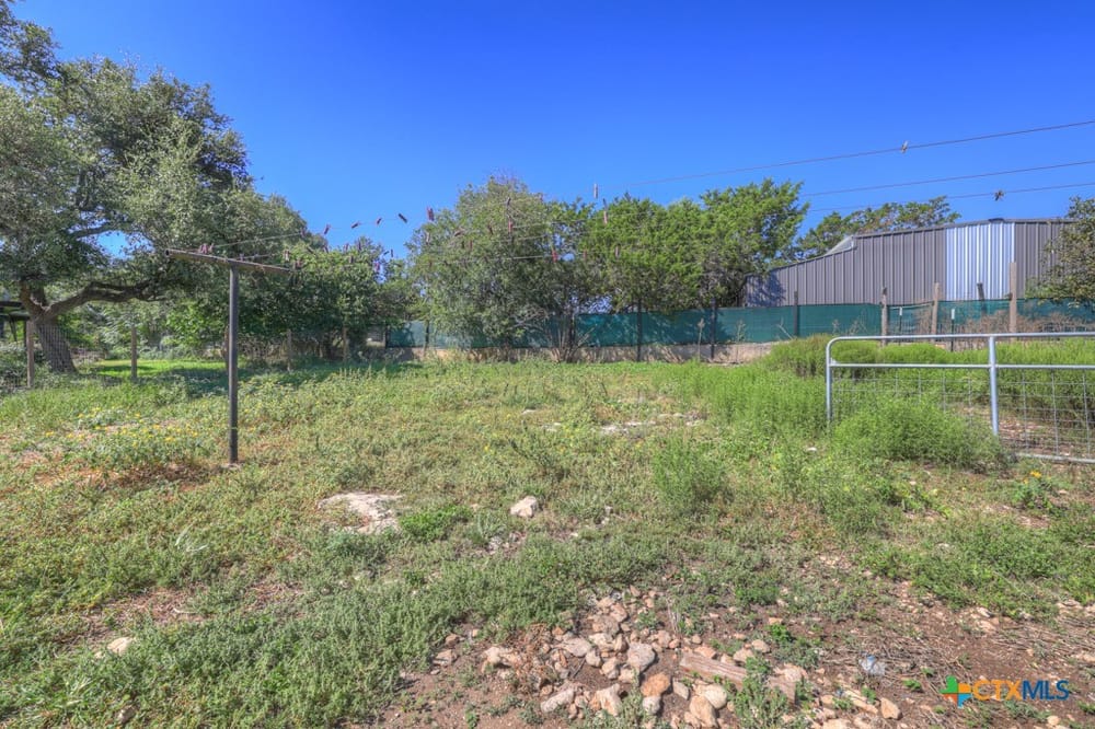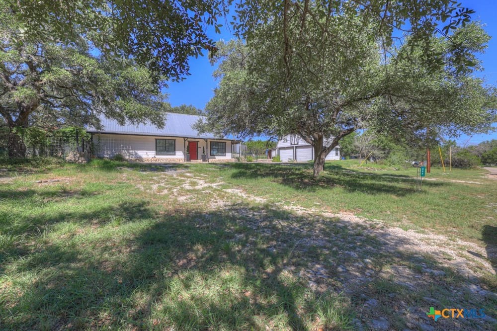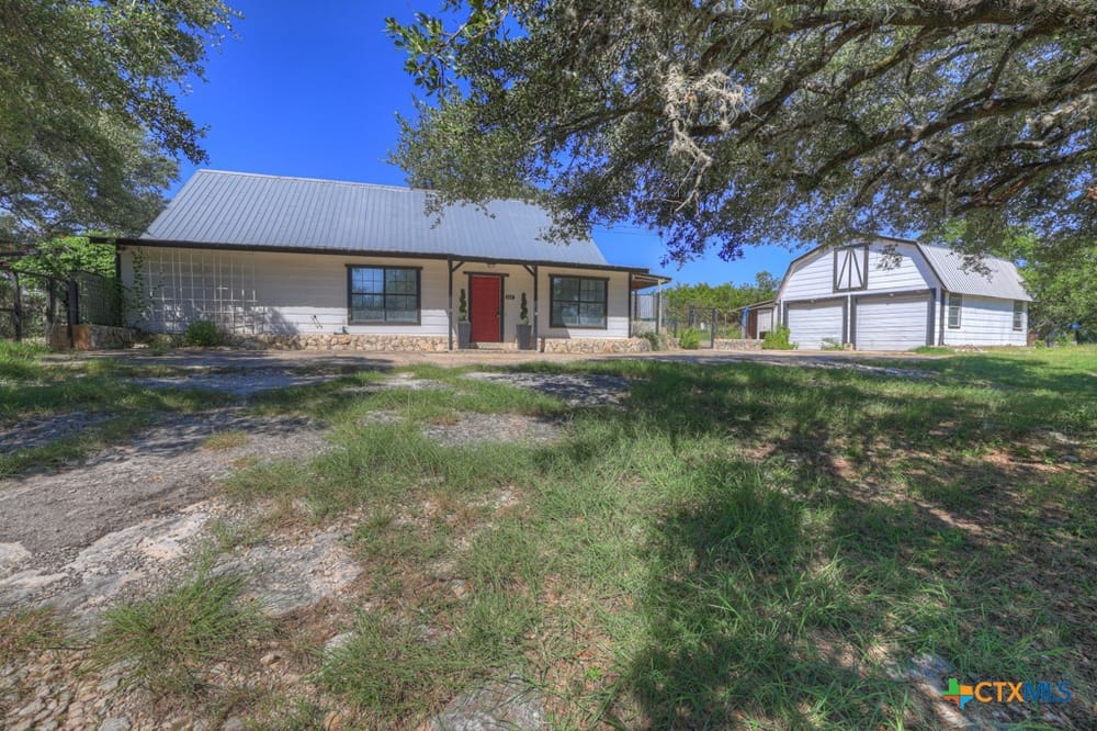 This charming farmhouse is brimming with potential and ready for your personal touch! Two bedrooms and one and a half bathrooms on the main floor, along with a spacious, open-concept kitchen, dining, and living area-perfect for everyday living and entertaining. A versatile hobby room could easily be transformed into a third downstairs bedroom to suit your needs. Upstairs, an open loft leads to a private en-suite, already plumbed for a full bathroom-ideal for a guest suite or creative retreat. Step outside to relax or entertain on expansive covered patios that run along both sides of the home, surrounded by mature oak, pear, and peach trees. There's plenty of room for a garden, pool, playset, or whatever your lifestyle calls for. The oversized detached garage offers ample space for tools, toys, and even includes additional storage upstairs. As part of the Cypress Lake Garden community, you'll enjoy private HOA access to Rebecca Creek Park and the Guadalupe River, complete with a playground, BBQ pits, camping areas, and more. Bring your vision to life-this is the canvas you've been waiting for. Schedule your showing today!