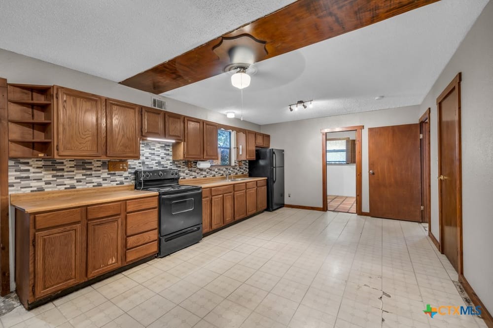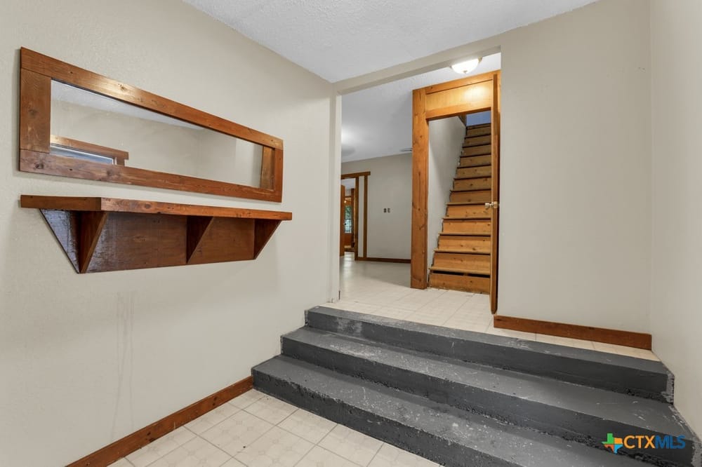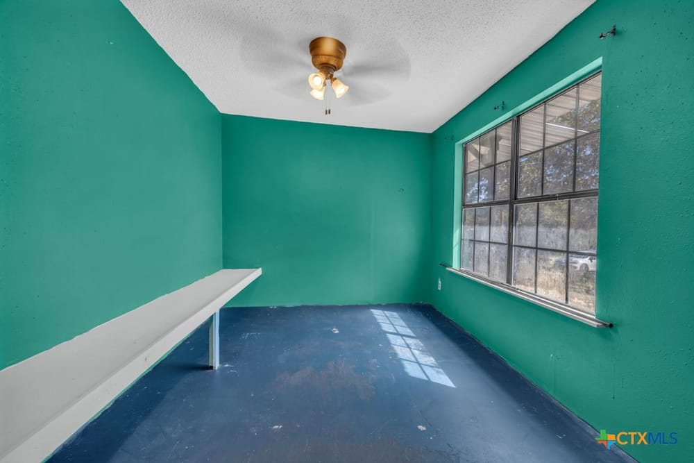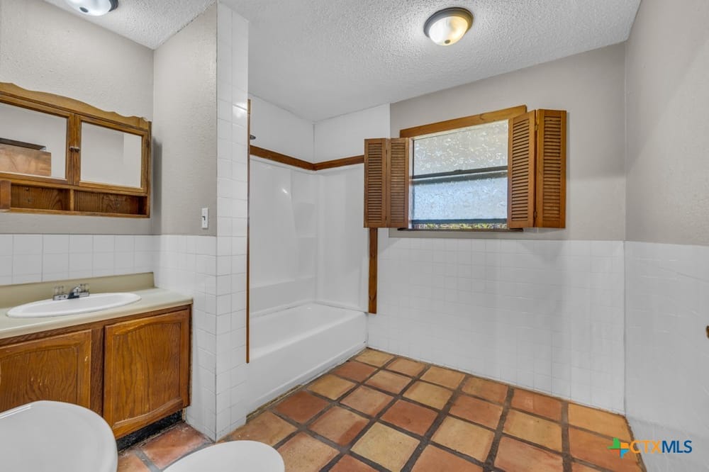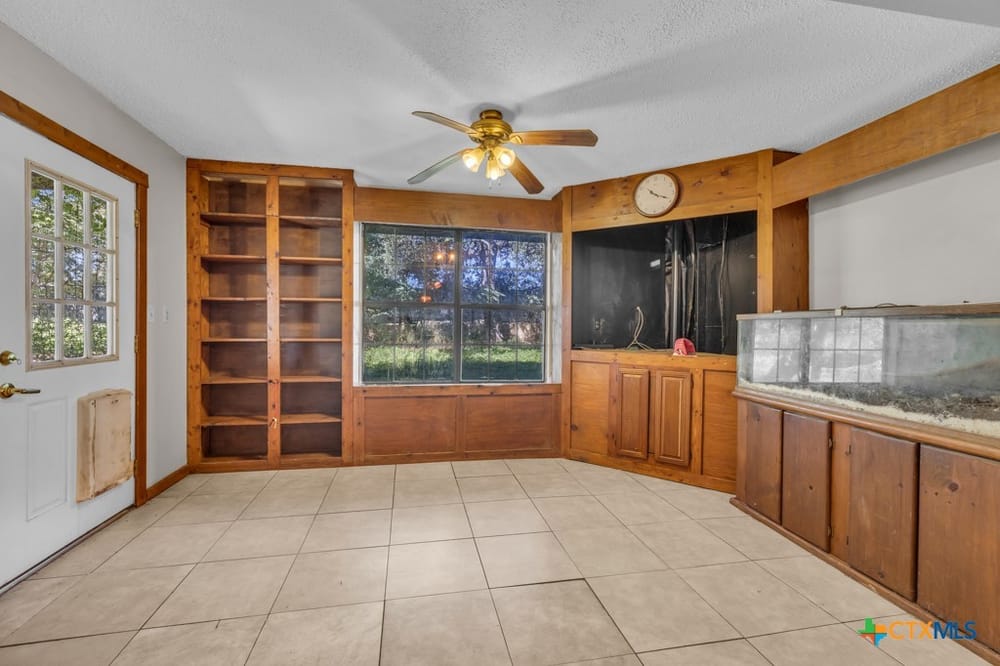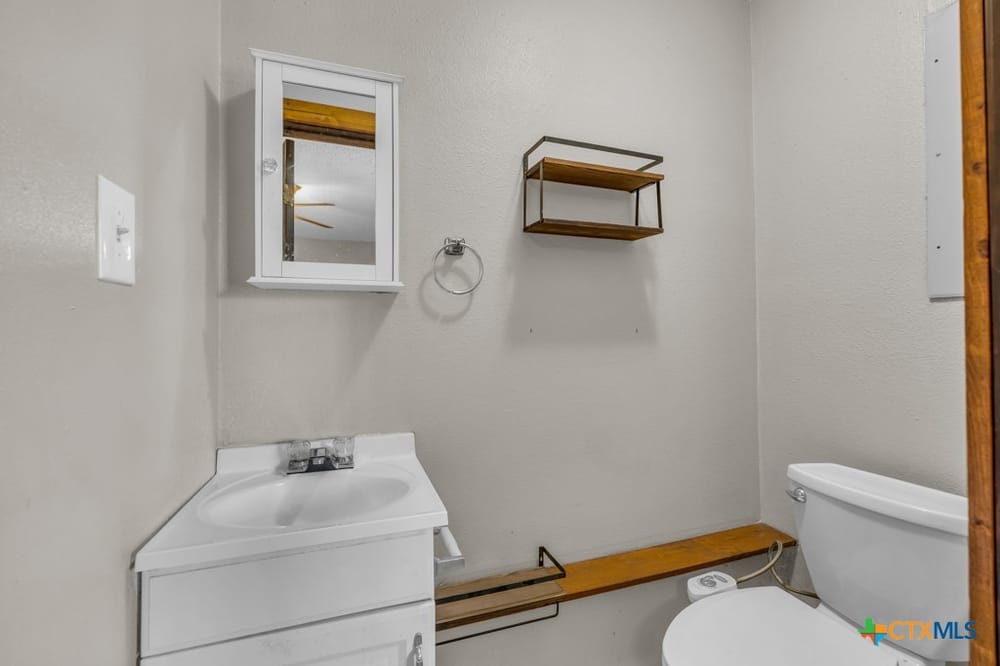 This charming farmhouse is brimming with potential and ready for your personal touch! Two bedrooms and one and a half bathrooms on the main floor, along with a spacious, open-concept kitchen, dining, and living area-perfect for everyday living and entertaining. A versatile hobby room could easily be transformed into a third downstairs bedroom to suit your needs. Upstairs, an open loft leads to a private en-suite, already plumbed for a full bathroom-ideal for a guest suite or creative retreat. Step outside to relax or entertain on expansive covered patios that run along both sides of the home, surrounded by mature oak, pear, and peach trees. There's plenty of room for a garden, pool, playset, or whatever your lifestyle calls for. The oversized detached garage offers ample space for tools, toys, and even includes additional storage upstairs. As part of the Cypress Lake Garden community, you'll enjoy private HOA access to Rebecca Creek Park and the Guadalupe River, complete with a playground, BBQ pits, camping areas, and more. Bring your vision to life-this is the canvas you've been waiting for. Schedule your showing today!
