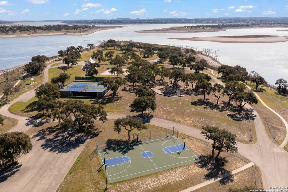 Welcome to the luxurious Peninsula at Mystic Shores. As you pass through the gated entrance, you'll be greeted by stunning views of the water just beyond the hill. Nestled on Arthur Court and Obscure Way, this expansive 1.19-acre corner lot is the perfect canvas for your brand new custom home, offering breathtaking views of the Guadalupe River and Texas hill country. This premium lot features mature trees and provides you the unique opportunity to orient your home for optimal use and views. Residents of this prestigious community also enjoy access to a high-end amenity center, community pool, sports courts, a park, and a clubhouse. Don't miss this chance to build your dream home in one of the most sought-after areas of Mystic Shores.